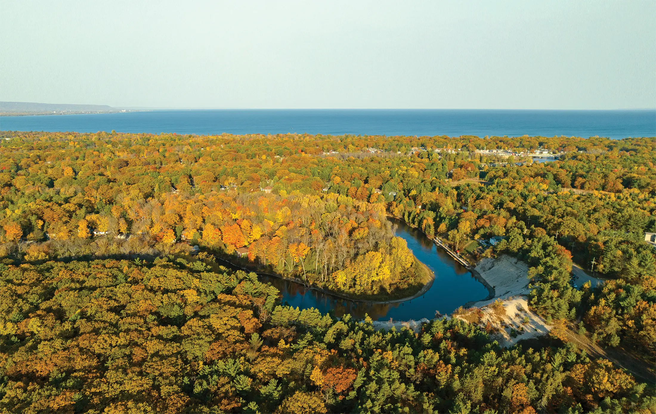 The fledgling logging industry in Georgian Bay greatly expanded in the 1850s when a railway was established between York (modern day Toronto) and Collingwood. In 1855, once the final section of rail was built and trains were running, logging activities intensified dramatically and large camps began popping up. Unfortunately, by the end of the 1870s, unfettered and frenzied logging activity had resulted in significant deforestation. By then, however, a modest village was already emerging where the river meets the bay.